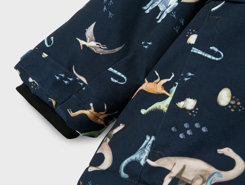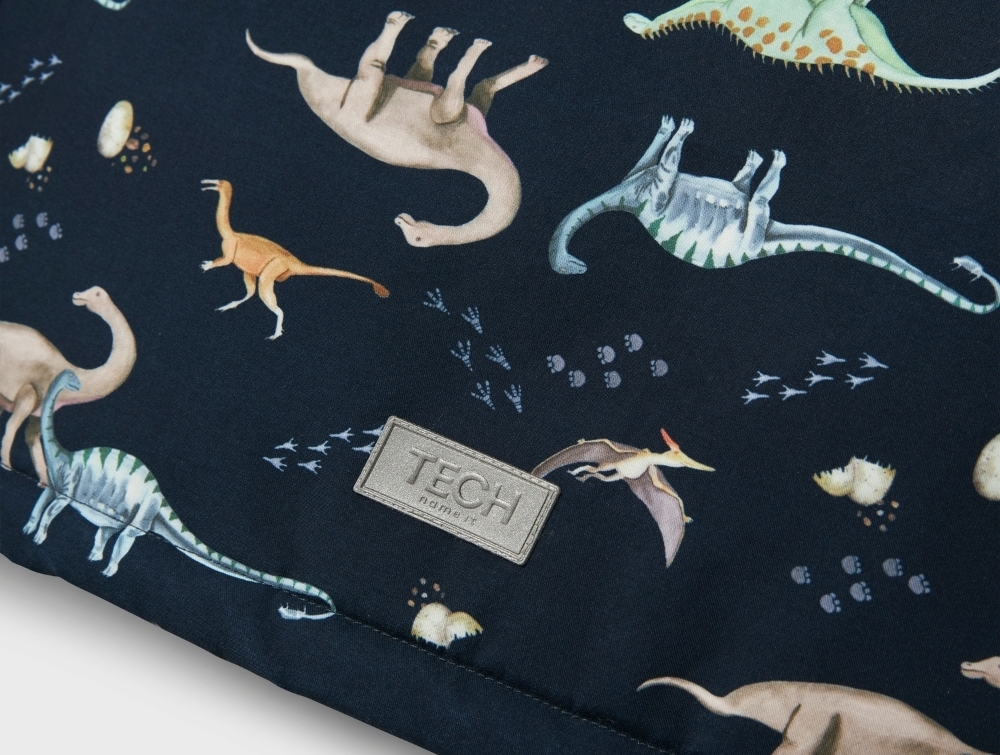 Name It vinterjakke mørkeblå med dinosaurprint og aftagelig hætteName It vinterjakke mørkeblå med dinosaurprint set bagfraAftagelig hætte på mørkeblå Name It vinterjakke med dinosaurprintÆrmedetalje på mørkeblå Name It vinterjakke med dinosaurprintName It TECH label på mørkeblå vinterjakke med dinosaurprint