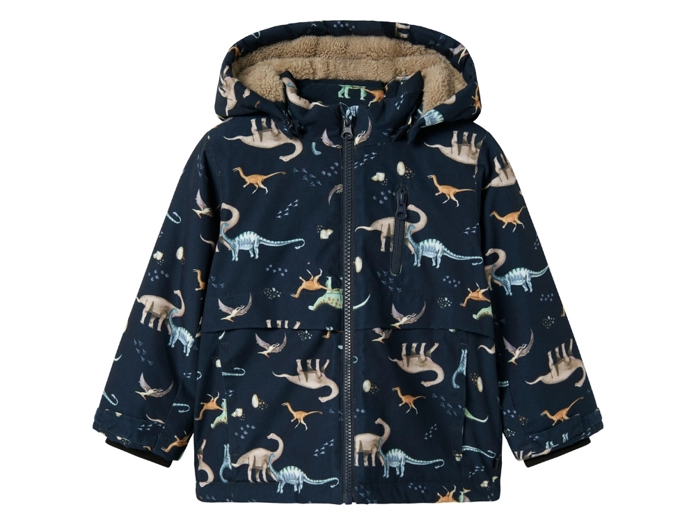 Mere information om Name It vinterjakke mørk sapphire med dinosaurprint og aftagelig hætte