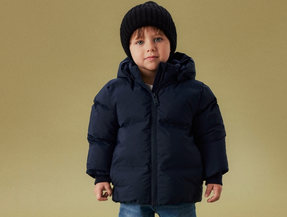 Jakken er fremstillet i genanvendt polyester og har blød polstring.