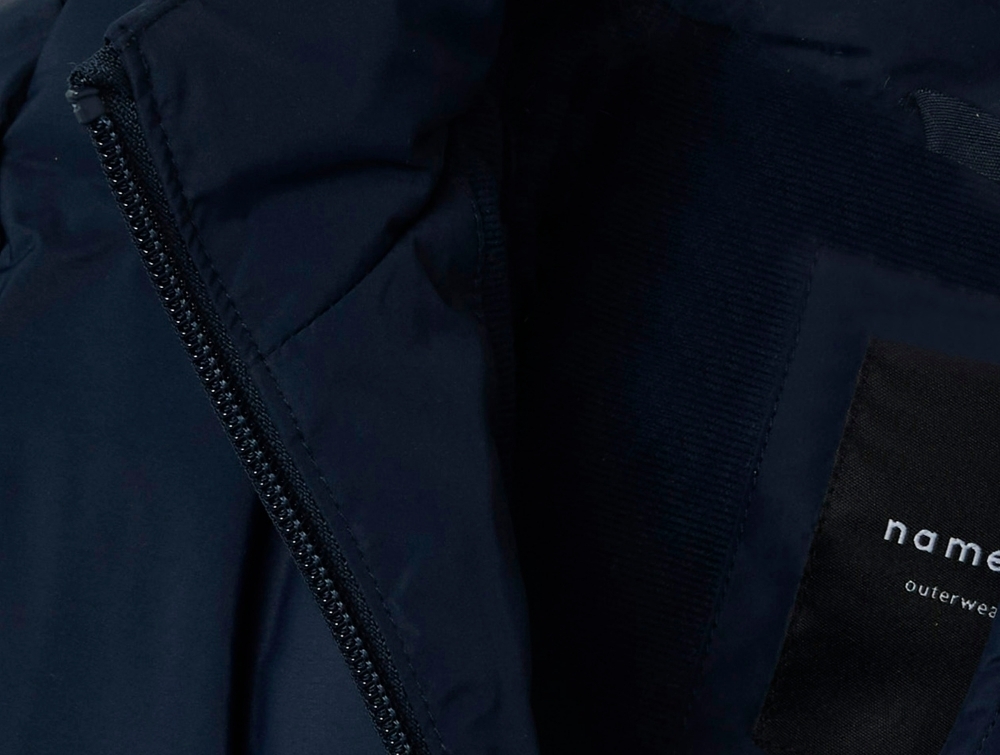 Vinterjakke i mørkeblå (navy blazer) fra Name It med varmt for og funktionelt design til kolde dage.