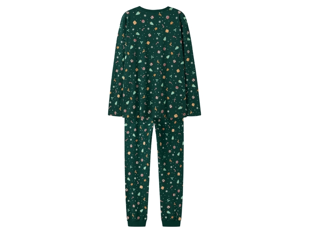 Voksenpyjamas i mørkegrøn nuance (botanical garden) med juleprint fra Name It.