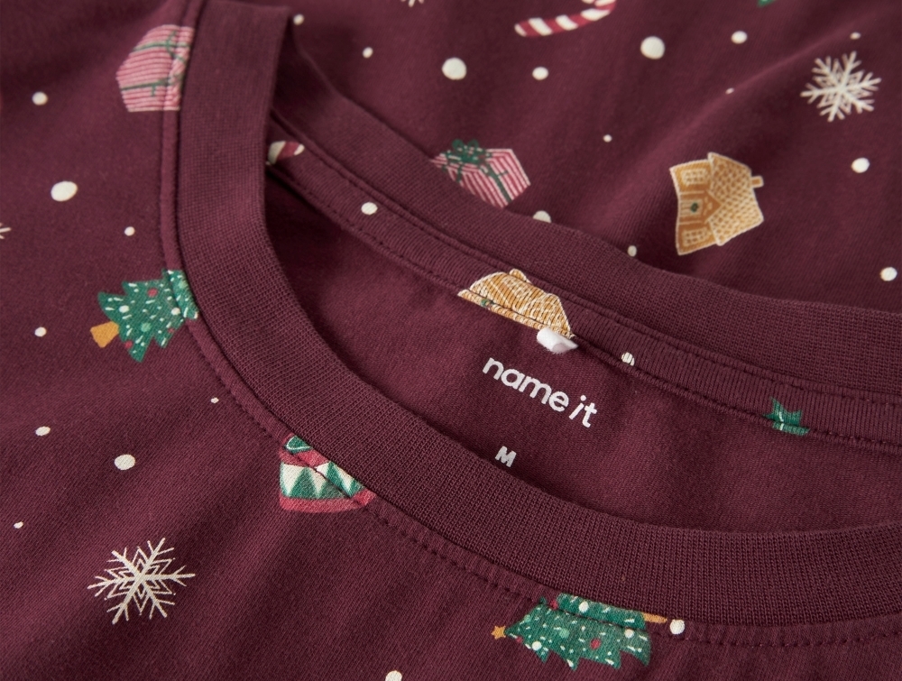 Mere information om Name It pyjamas burgundy med juleprint (voksen)