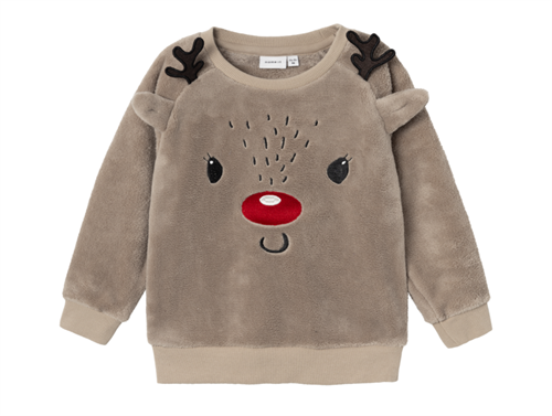 Teddybluse i farven weathered teak med rensdyr-tema fra Name It.