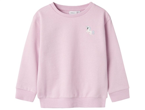 Sweatshirt i farven winsome orchid med lille enhjørning-broderi fra Name It.