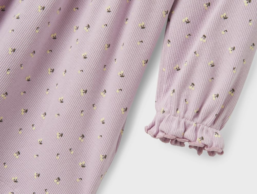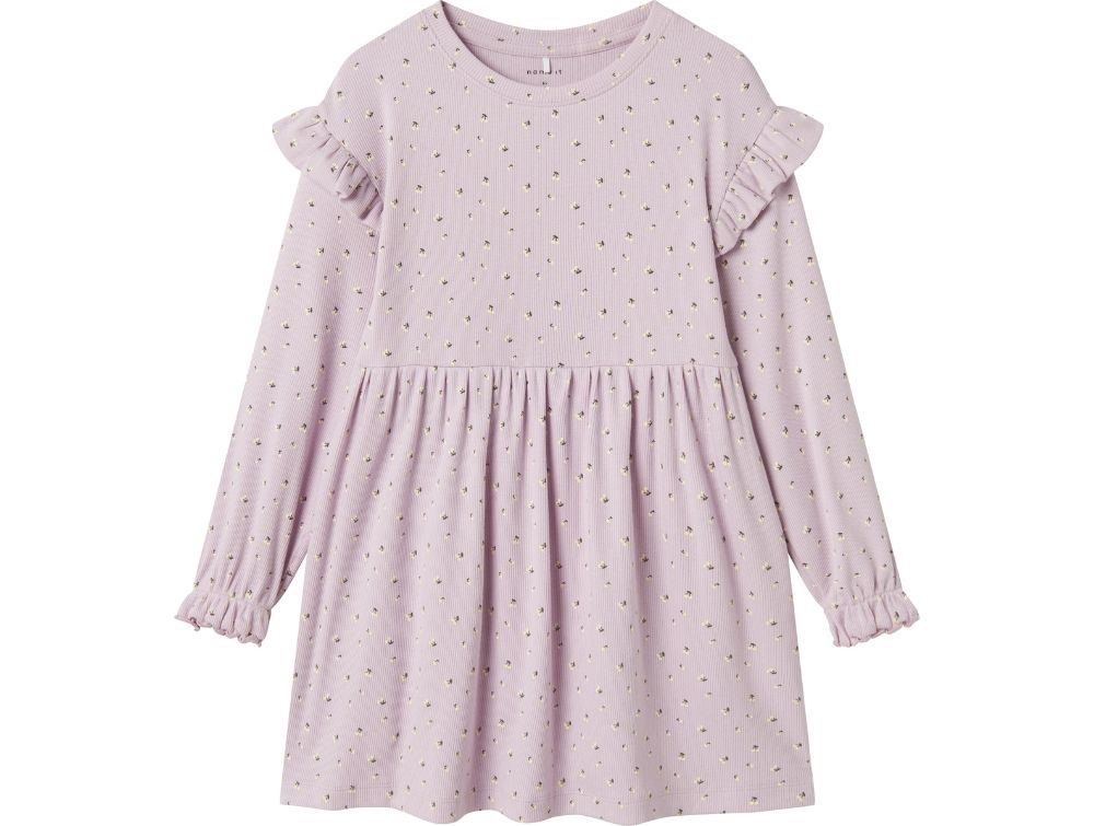 Kjole i farven winsome orchid med småt kirsebærprint fra Name It.
