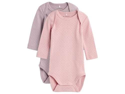 2 ensfarvede bodystockings med fint pointelle hulmønster fra Name It.