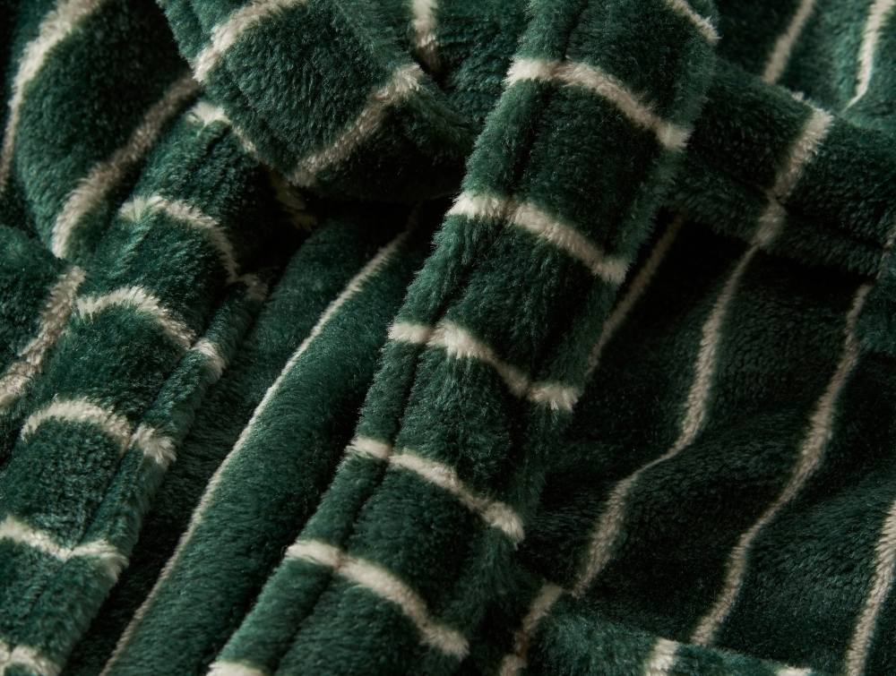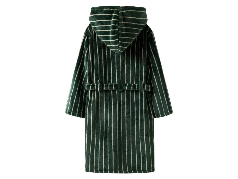 Badekåbe i grøn (bistro green) fra Name It i blød velour med lodrette striber.