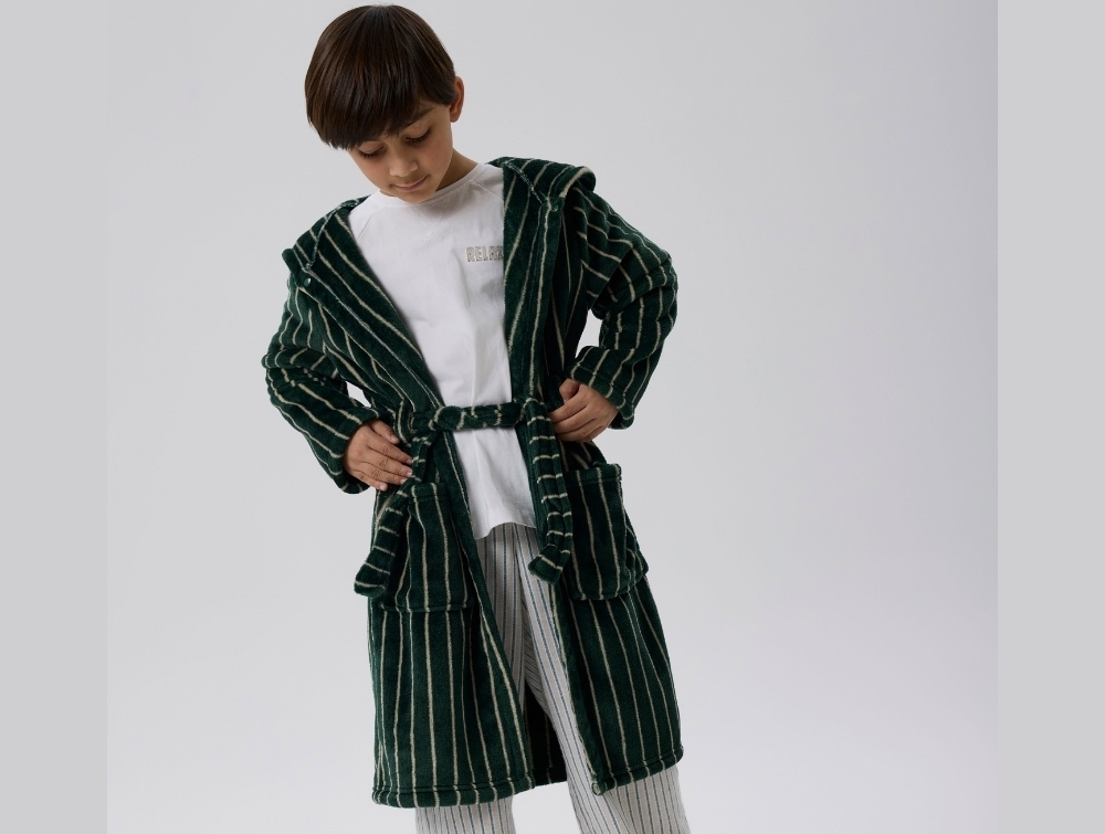 Badekåben er perfekt efter badet eller til hyggelige morgener og aftener hjemme. Den kombinerer komfort og klassisk stil i et design, børn vil elske.