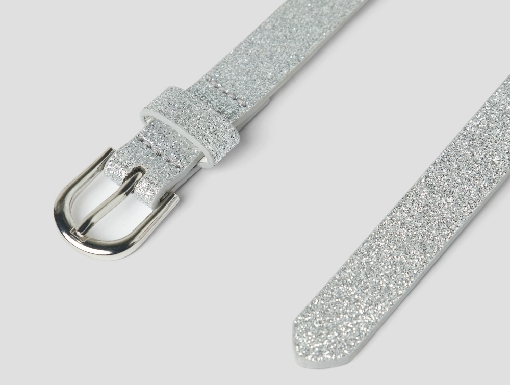 Bælte i sølv (silver) fra Name It med flot glimmerfinish.