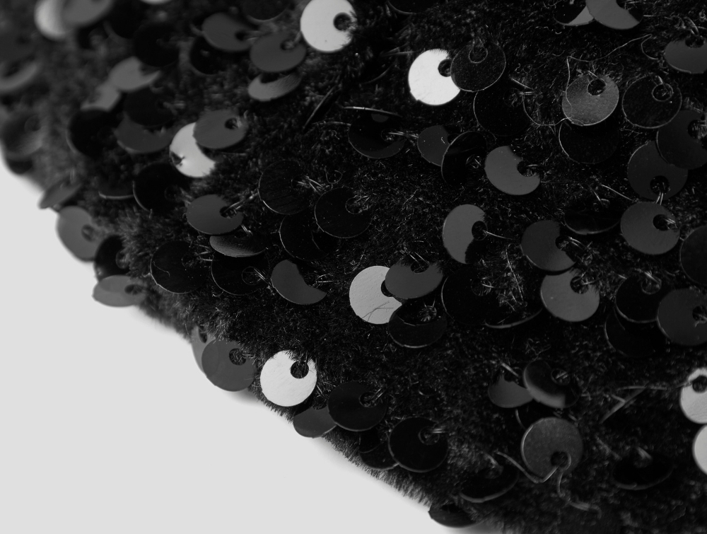 Den bløde velouroverflade kombineret med de skinnende pailletter giver et elegant og festligt udtryk.