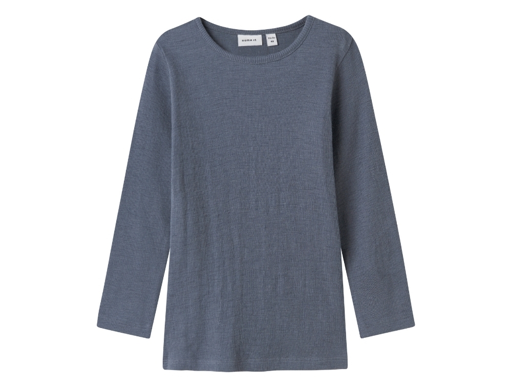Name It top i gråblå nuance i merinould/silke med lange ærmerName It top i merinould/silke i gråblå nuance set tæt påName It top i folkstone gray med lange ærmer set bagfra