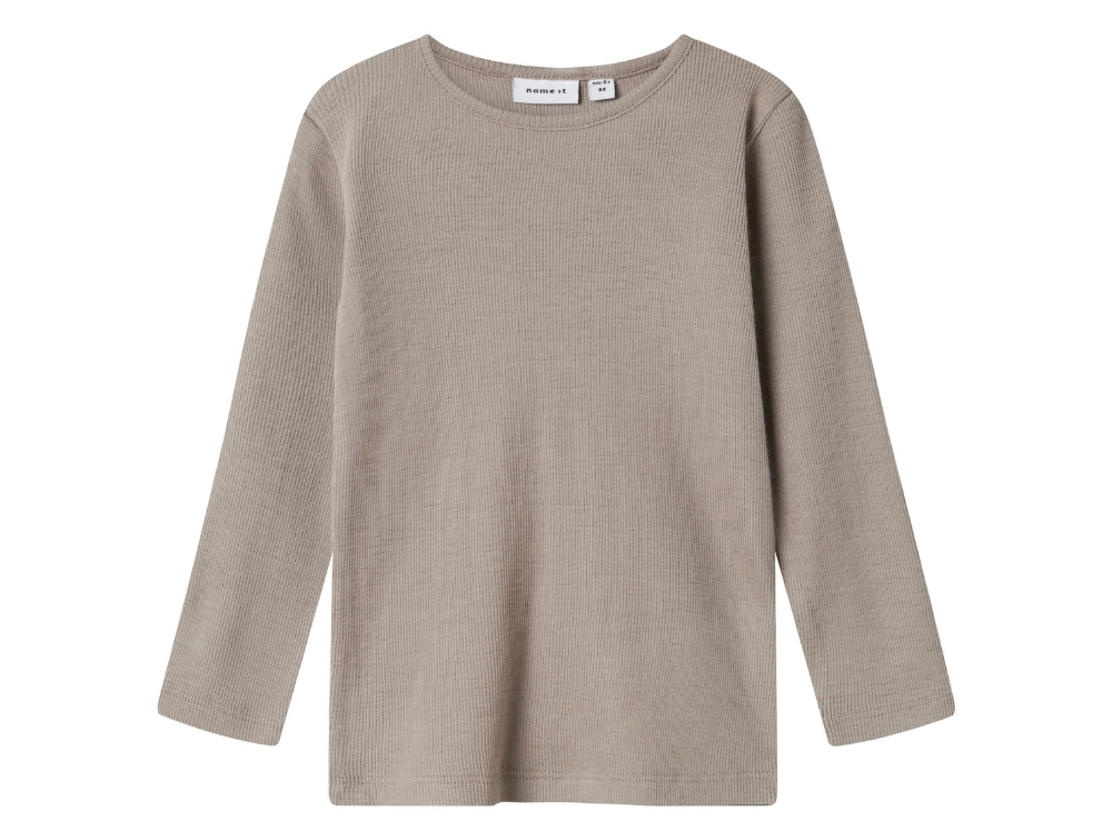 Name It bluse i grå/brun nuance i merinould/silke med lange ærmer