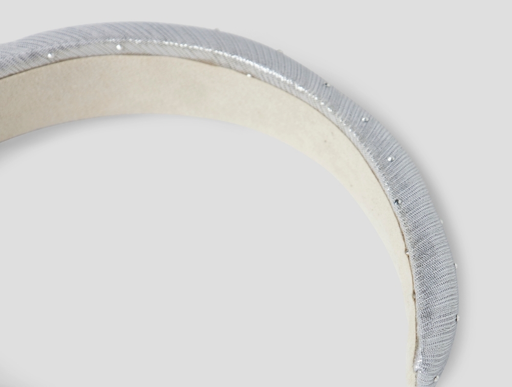 Den sølvfarvede hårbøjle har en let polstret form, som sidder behageligt på hovedet, og de små sten giver et elegant og festligt udtryk. En flot accessory, der kan bruges både til hverdag og særlige lejligheder.