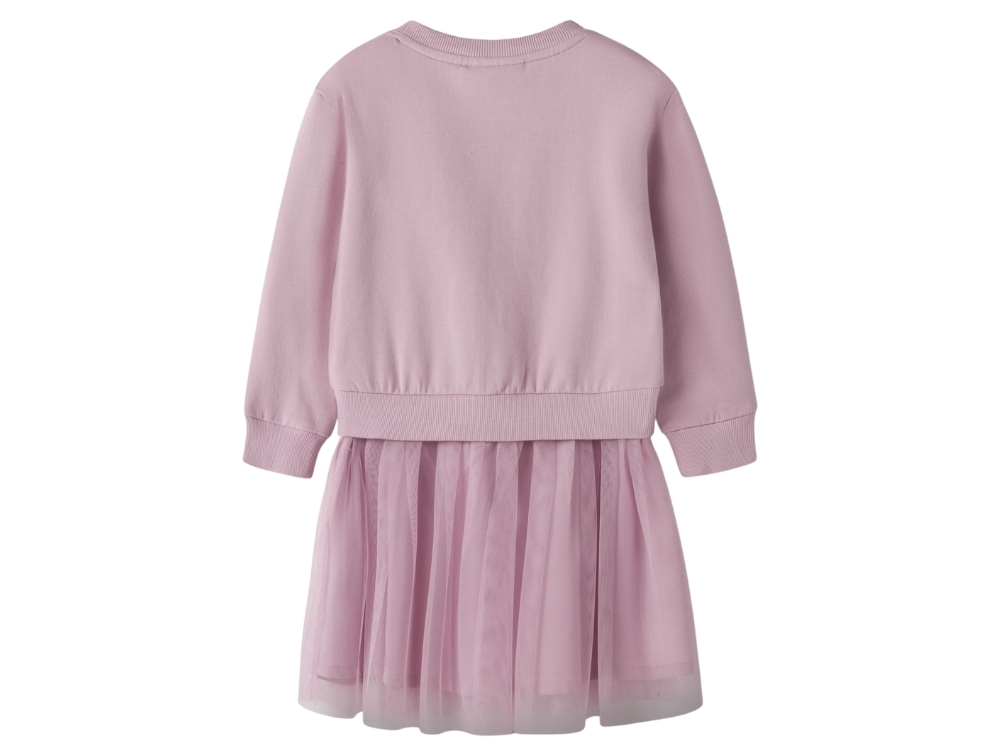 Kjole i lyserød nuance (keepsake lilac) fra Name It med Hello Kitty print og tylskørt.