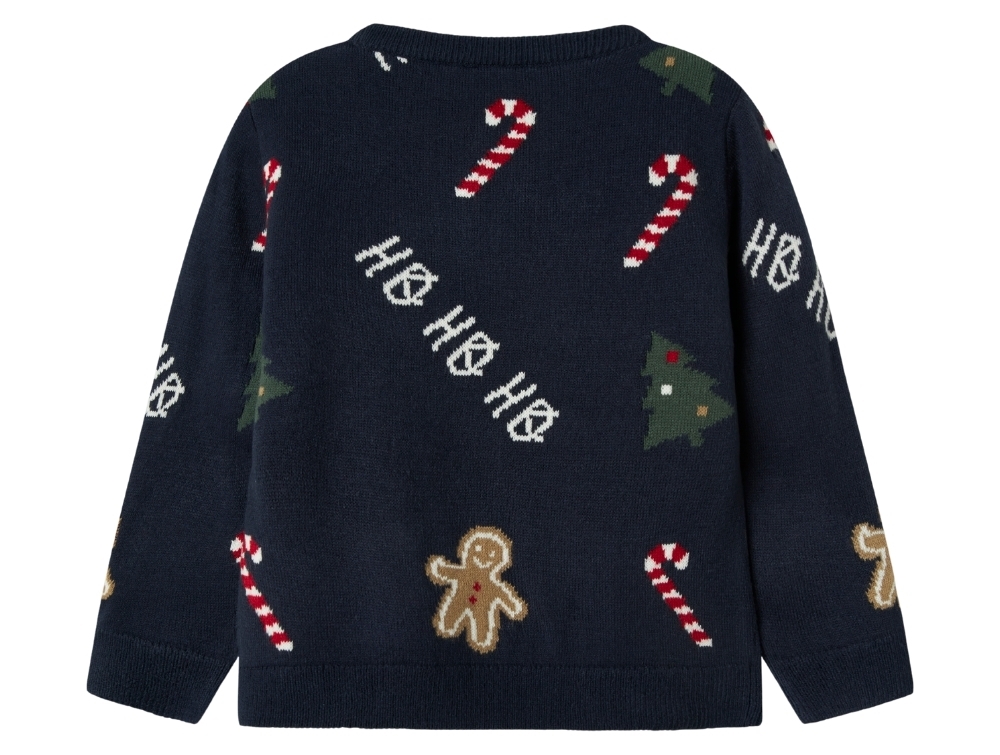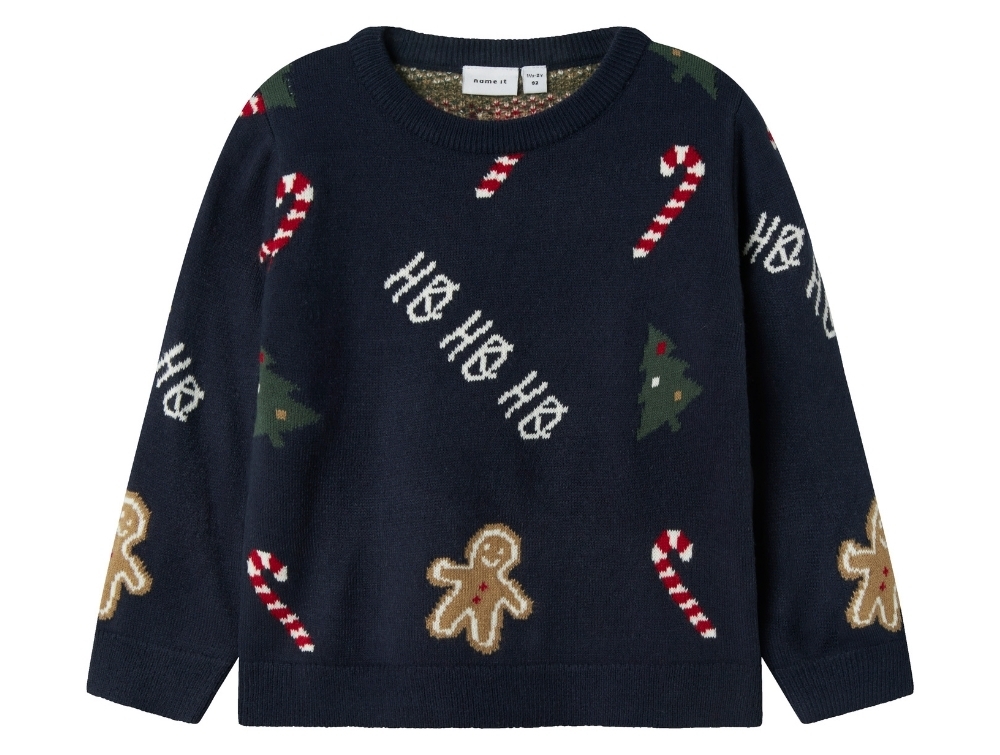 Name It julestriktrøje i mørkeblå med kagemænd og juletræer