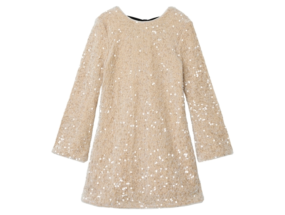 Kjole i offwhite nuance fra Name It med lange ærmer og all-over pailletter, der giver et skinnende festlook.