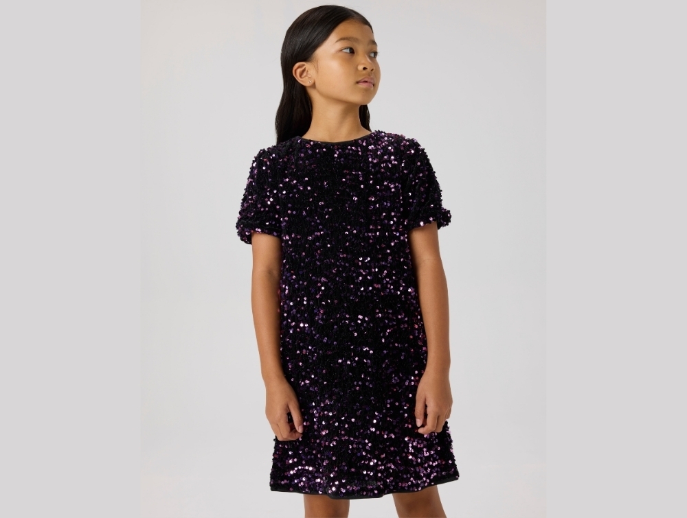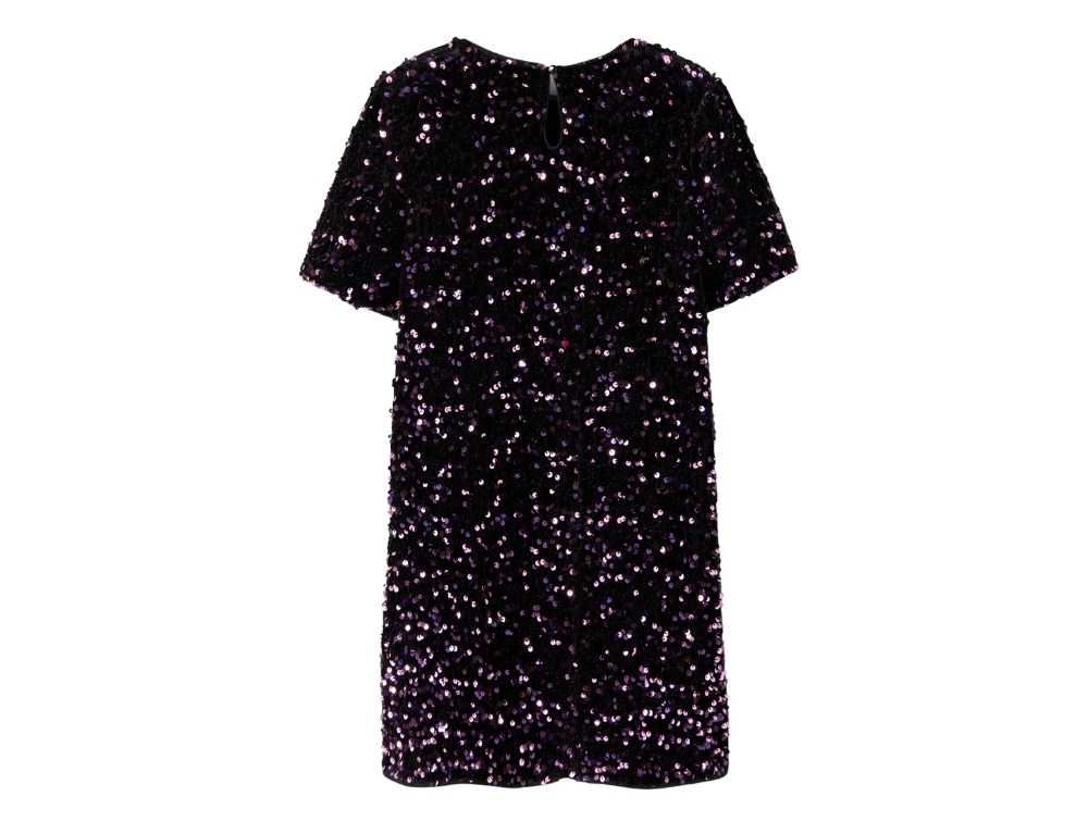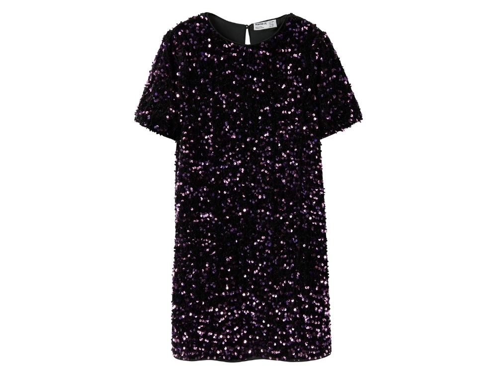 Kjole i lilla nuance (byzantium) fra Name It med all-over pailletter.