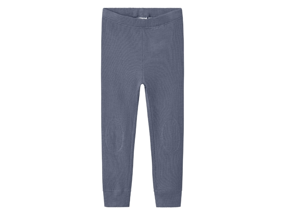 Name It leggings i blågrå nuance i merinould/silke med ribBarn iklædt Name It leggings folkstone gray i ribstrik med elastik i taljenName It leggings i merinould/silke i blågrå nuance med knæforstærkningName It leggings i folkstone gray nuance i rib med slim fit set bagfra