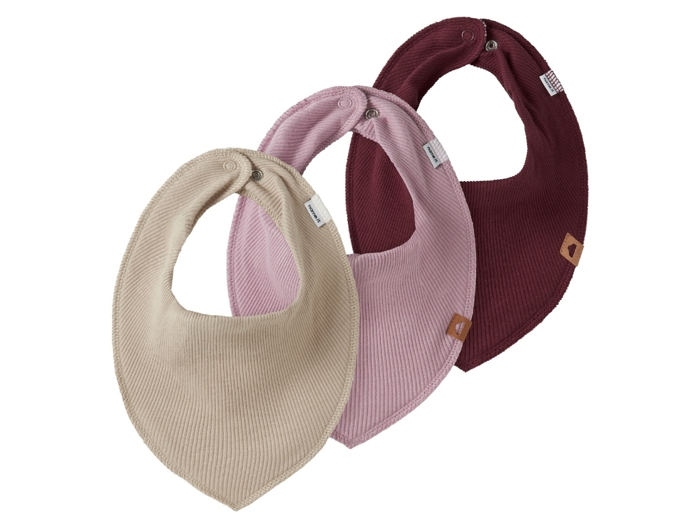 Name It savlesmække i cement, lilac og burgundy rib 3-pakDetalje af cementfarvet savlesmæk i rib fra Name It 3-pak