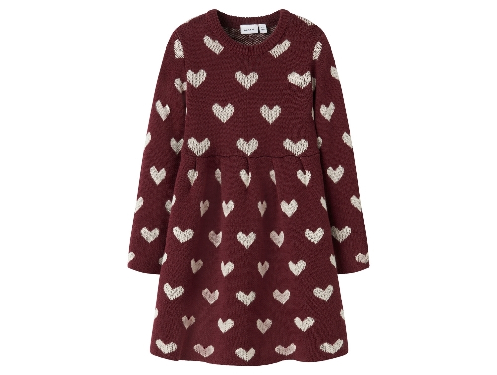 Mere information om Name It strikkjole burgundy med hjertemønster