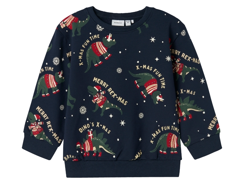 Name It sweatshirt mørkeblå med dinosaur juleprint