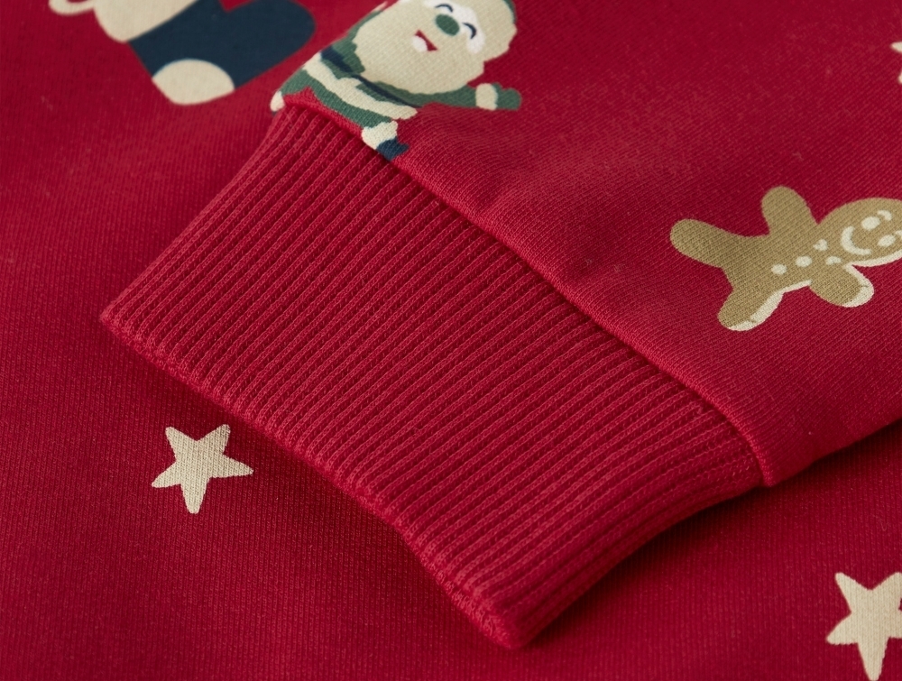 Sweatshirten er fremstillet i 95% økologisk bomuld og 5% elastan. Den har børstet inderside for en blød komfort og en almindelig pasform, der gør den nem at bruge til både hverdag og festlige lejligheder i julen.