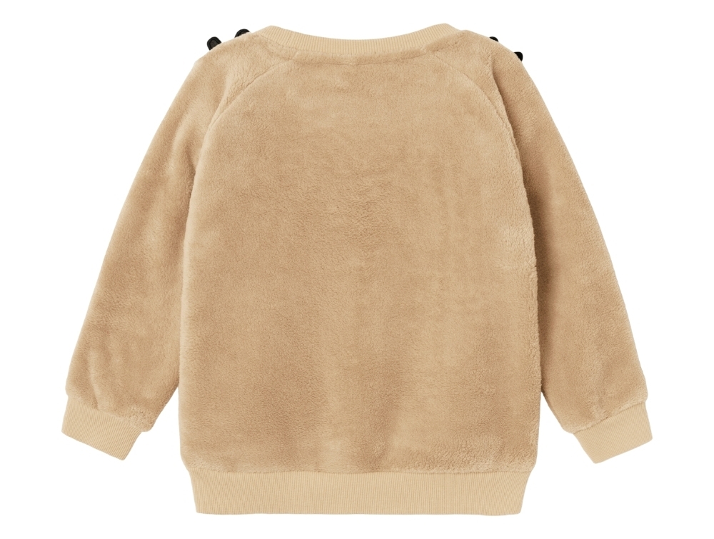 Name It sweatshirt peyote med rensdyr motivDetalje af rensdyr broderi på beige sweatshirt fra Name ItBagside af beige sweatshirt fra Name It uden print