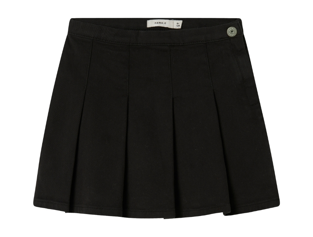 Name It twillnederdel sort set forfraDetalje af knap og linning på Name It sort twillnederdelName It twillnederdel sort set bagfra