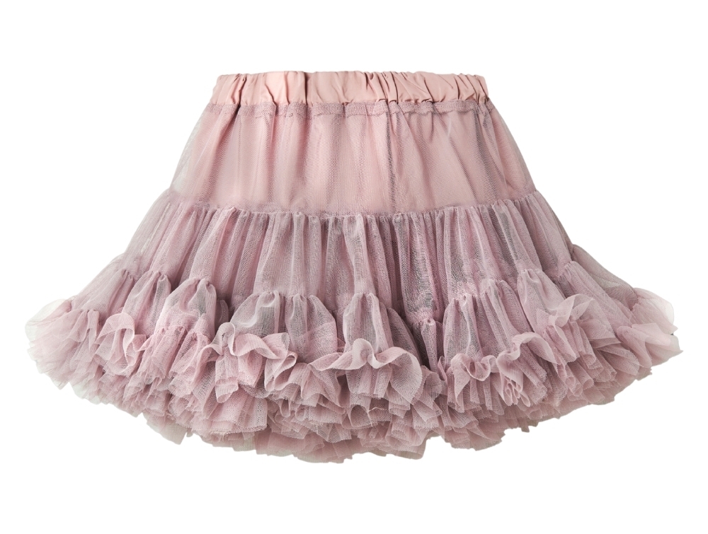 Tylskørt i lyserød nuance (keepsake lilac) fra Name It med flæser og lag-på-lag effekt.