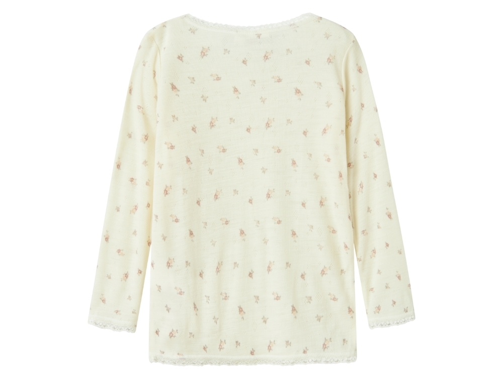 Name It bluse i råhvid merinould med blomsterprint og hulmønster