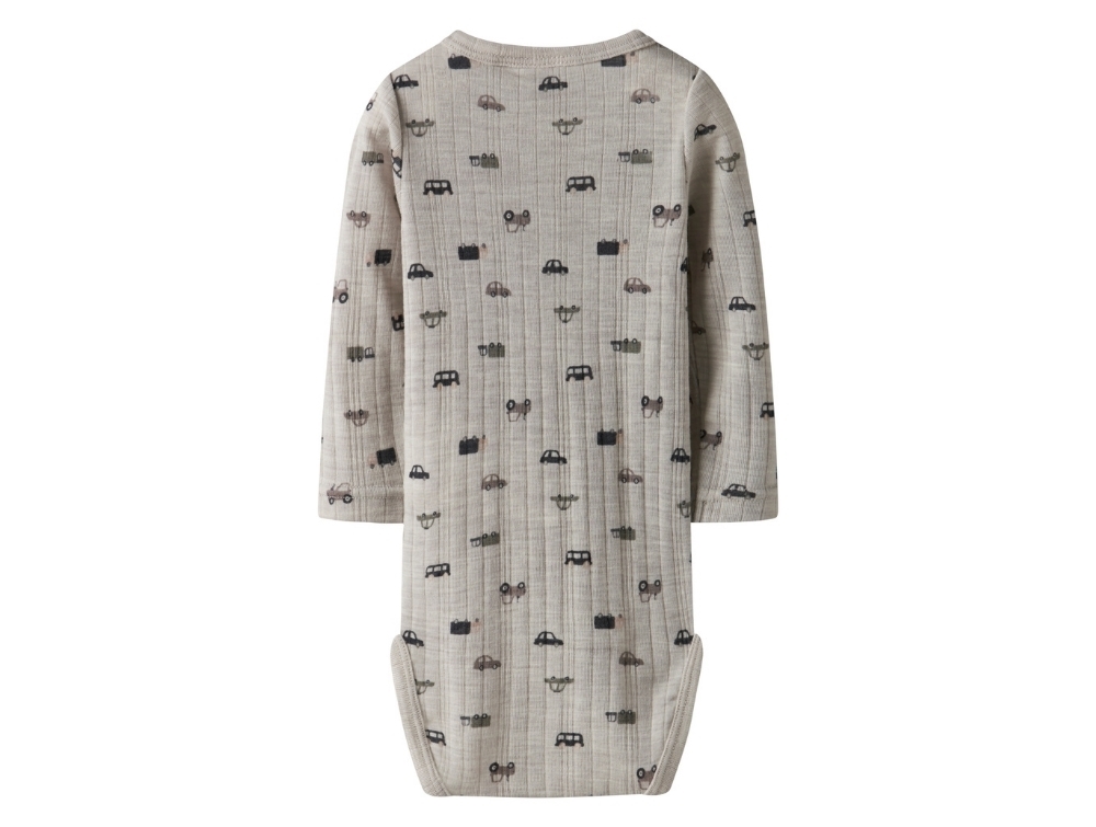 Name It body i lys grå merinould med ribstruktur og bilprint