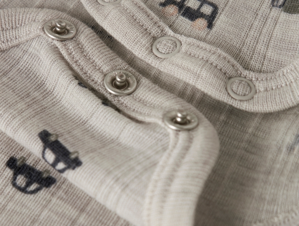 Name It uld body i nacreous cloud merinould med bilprintDetalje af Name It uld body i nacreous cloud med trykknapperBagside af Name It uld body i nacreous cloud med bilprint