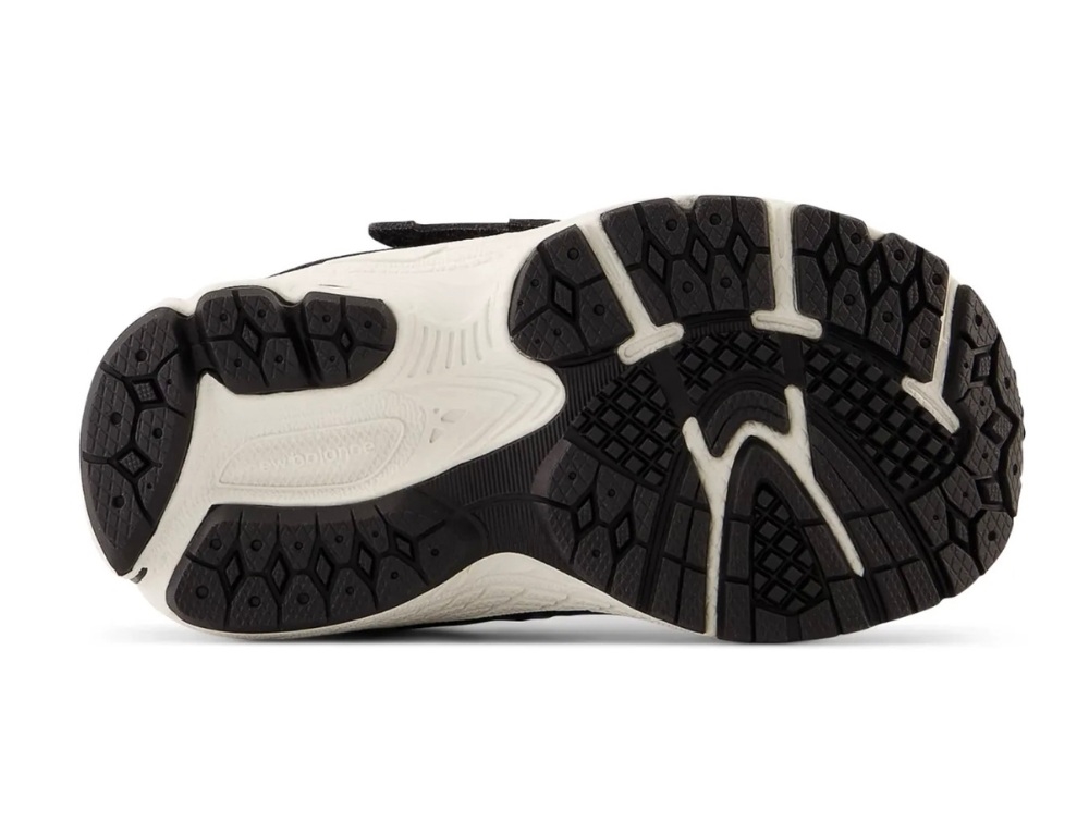 Sneaker i sort fra New Balance med praktisk velcrolukning, der gør skoen nem at tage af og på. Modellen er designet til mindre børn og kombinerer et sporty udtryk med stabil opbygning til aktiv hverdagsbrug.