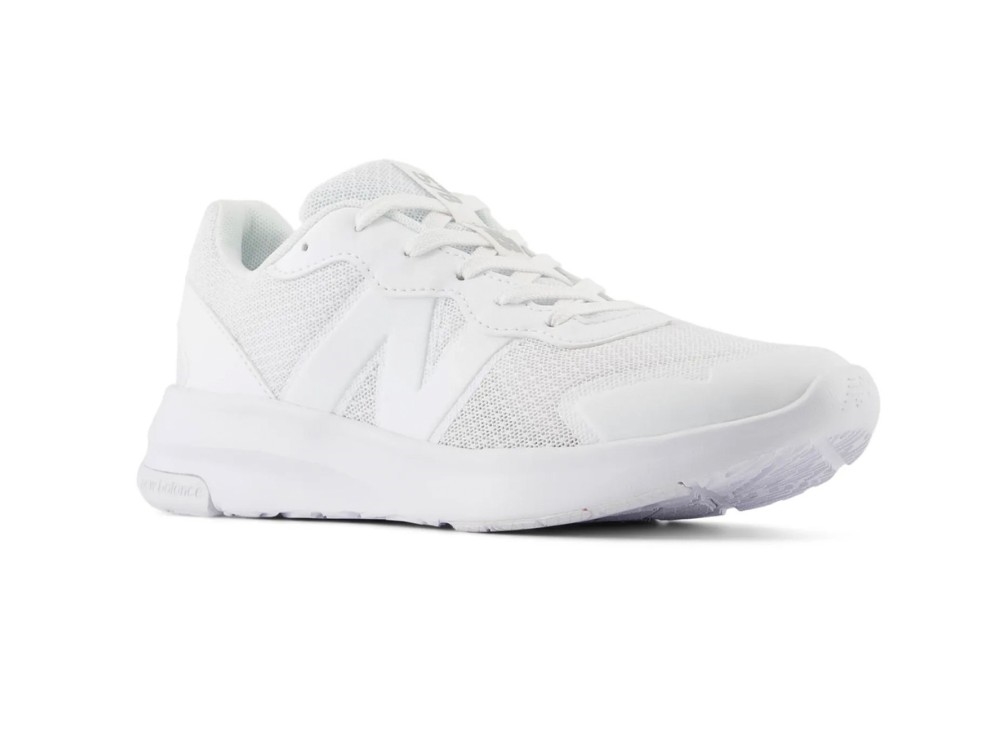 Sneaker i hvid fra New Balance med klassisk snørelukning, designet til større børn med fokus på let vægt og komfort i hverdagen. Modellen er velegnet til skole og fritid, hvor der er behov for bevægelsesfrihed og stabil støtte.