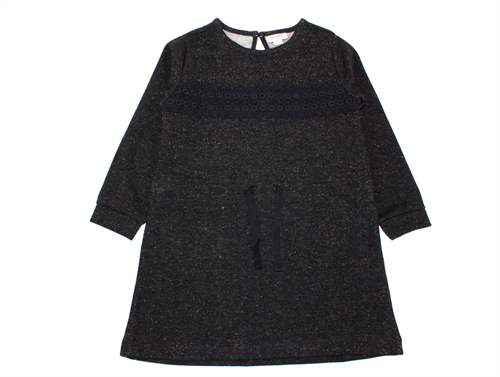 Sort sweatkjole med guldglimmer fra Noa Noa Miniature. Kjolen har justerbart bånd i taljen og knappelukning i nakken.