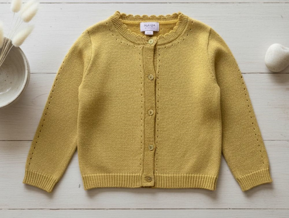 Gul cardigan med glimmer fra Noa Noa Miniature.