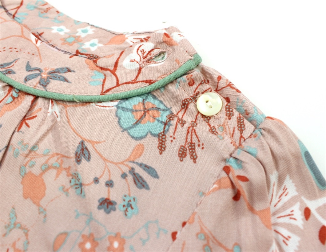 Rosa kjole med blomsterprint fra Noa Noa Miniature. Kjolen har knapper ved skulderne.