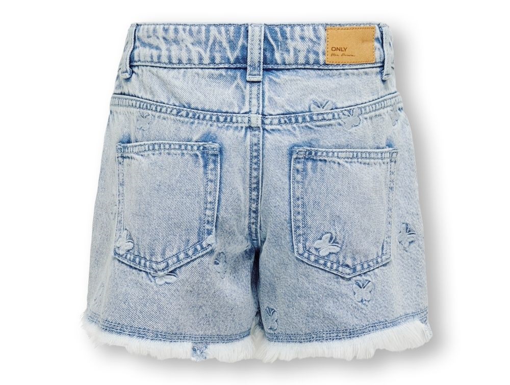 ONLY denimshorts light blue denim butterfly med frynsekant