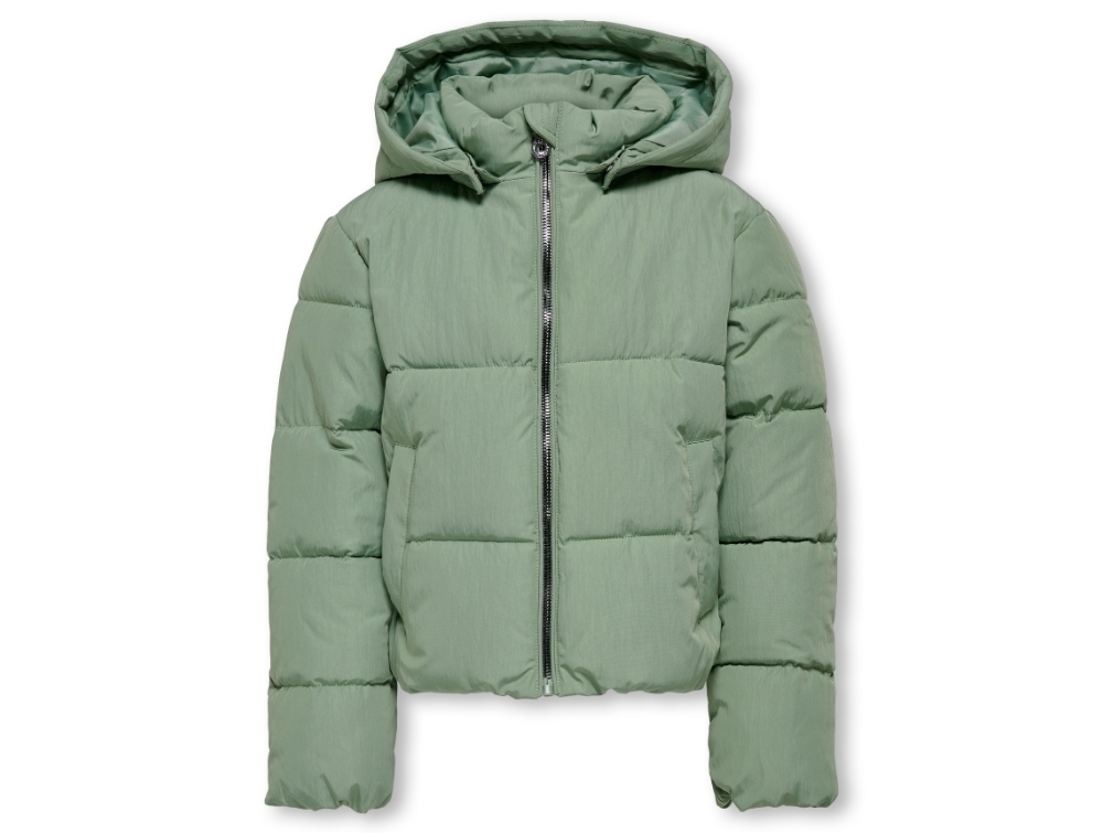 Only grøn puffer jakke hedge green med aftagelig hætte og lynlåslukning