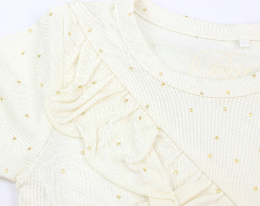 Råhvid body med små guldprikker og flæse fra Petit by Sofie Schnoor.