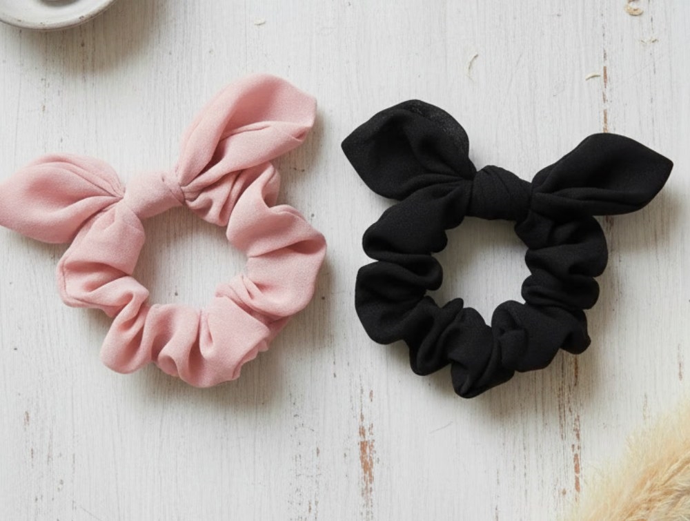 Pakke med 2 hårelastikker med sløjfe i sort og rosa fra Petit by Sofie Schnoor.