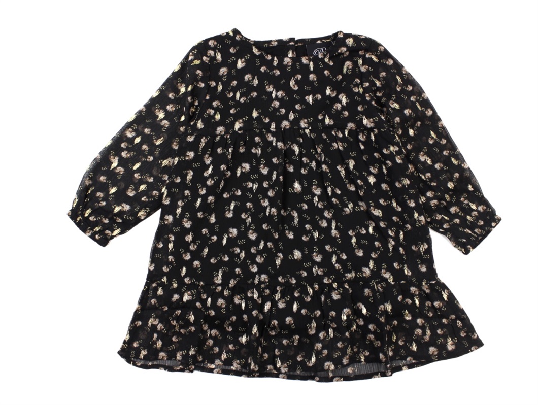 Sort kjole med blomsterprint og guldglitter fra Petit by Sofie Schnoor.