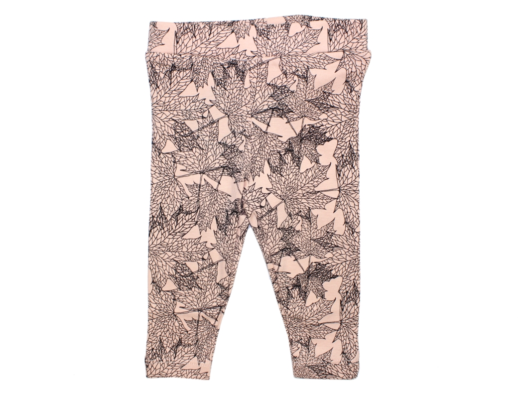 Rosafarvede leggings med heldækkende sort bladprint fra Petit by Sofie Schnoor med elastik i taljen.