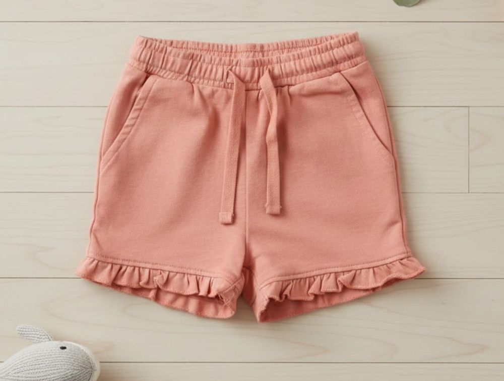 Shorts i farven dusty rose fra Petit by Sofie Schnoor. Der er to lommer, elastik i linningen og flæser.