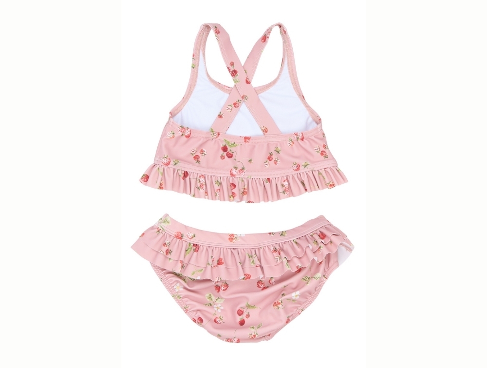 Bikini i rosa nuance (Misty Rose Strawberry) fra Petit Piao med et fint akvarelprint af jordbær og små blomster.