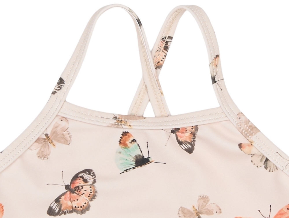 Badedragt i råhvid nuance (Fog Butterfly) fra Petit Piao med et smukt akvarelprint af sommerfugle.