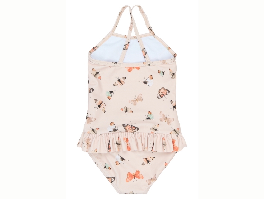 Petit Piao badedragt i råhvid med sommerfugleprint og flæsekant
