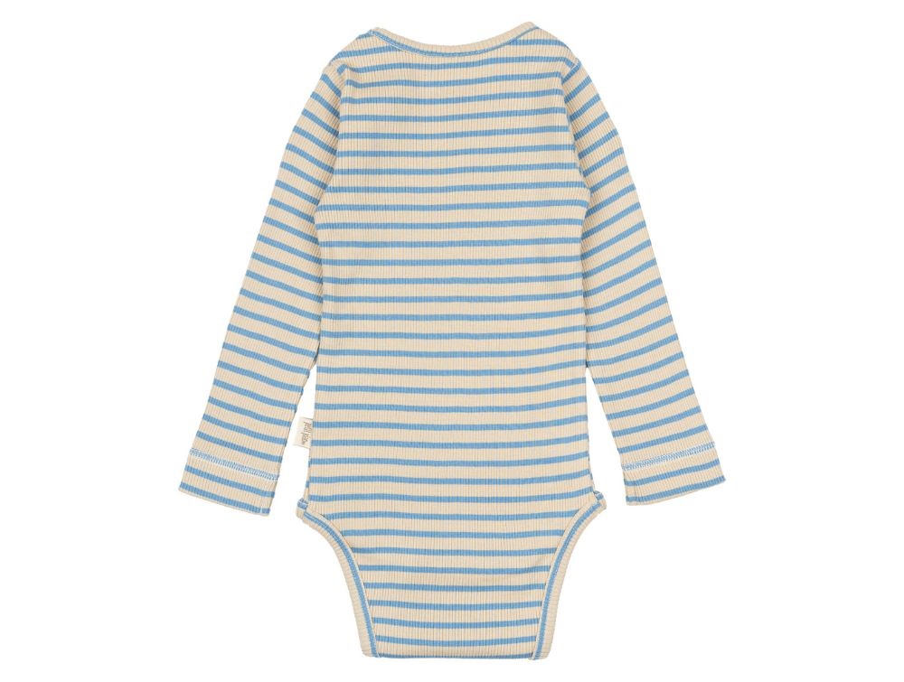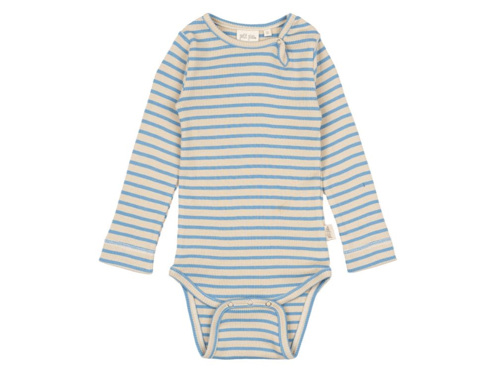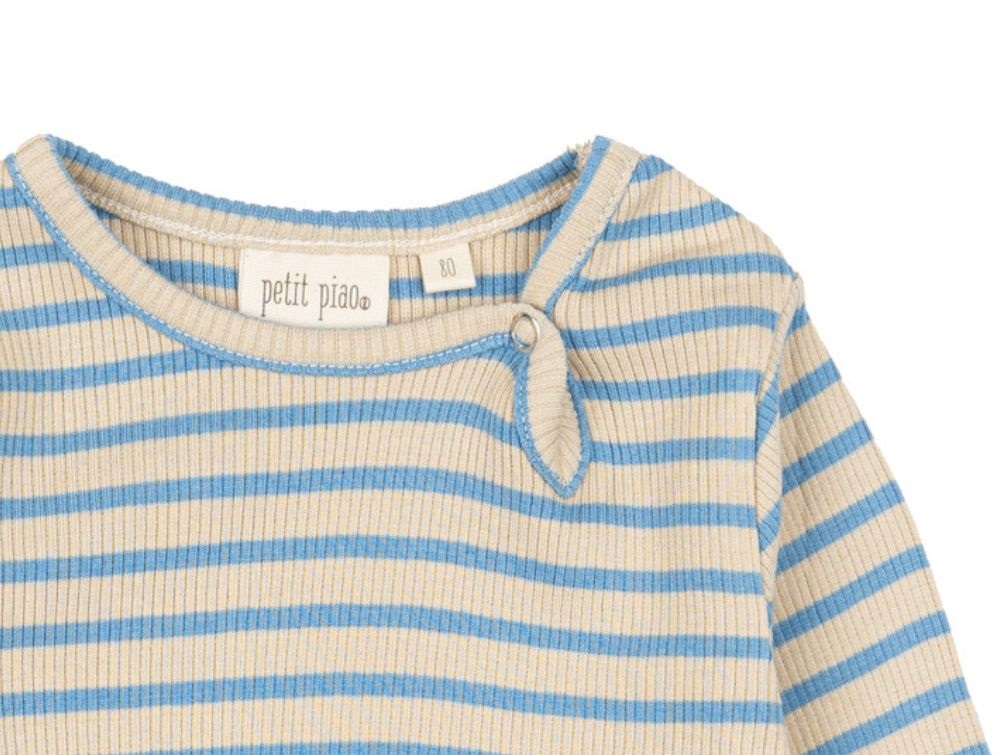 Stribet langærmet body i farverne allure blue (allure blue) og mørk råhvid (dark off white) fra Petit Piao.
