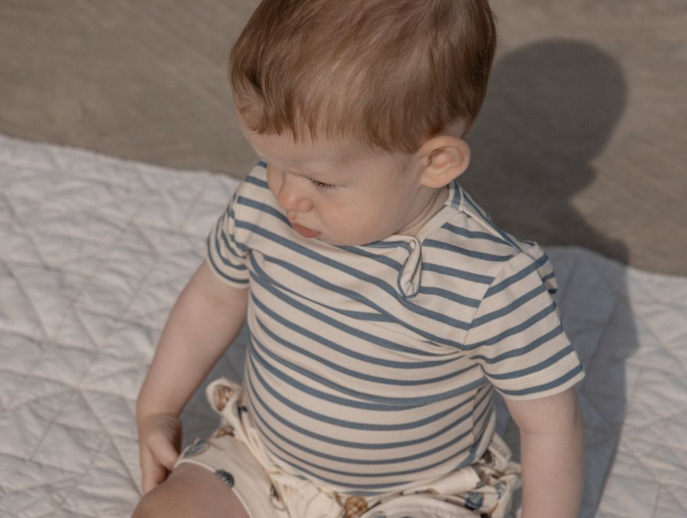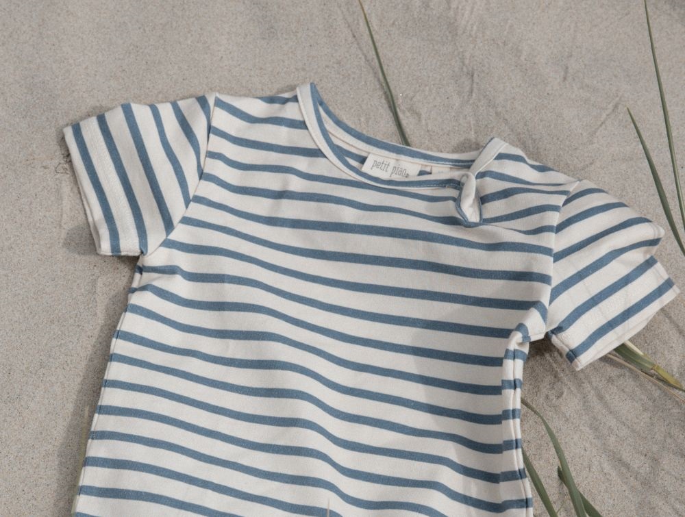 Body i råhvid med blå mirage (blue mirage) striber fra Petit Piao.