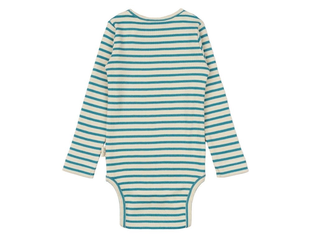 Stribet langærmet body i farverne turkis (turquoise) og mørk råhvid (dark off white) fra Petit Piao.